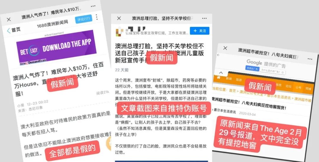 澳大利亚媒体 ABC 在 2019 年针对微信公号文做的调查报道,标题:《2019年联邦大选: 针对澳大利亚华裔的反工党恐慌运动》,题图为当时公号中盛传的一张 meme 图