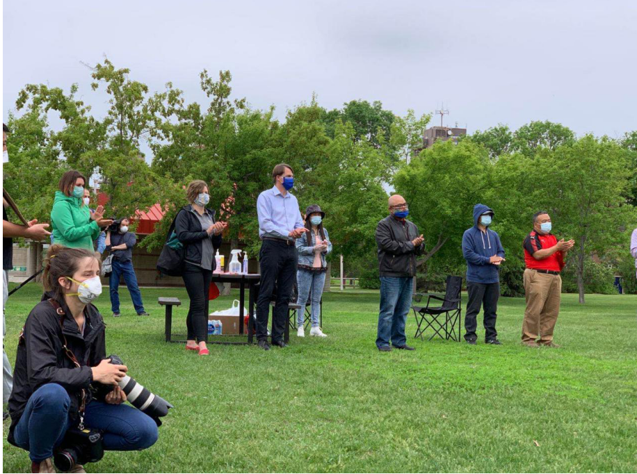 6月14日下午2点,两三百名萨斯卡通市的华人居民聚集在金斯曼公园,反对针对中国人的种族主义行为。