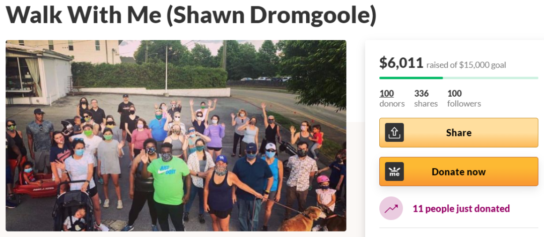 他和他在散步中结识的邻居们一起开始行动起来。通过gofundme,他们已经筹集了6000多美元。这大约是他目标的三分之一,但德罗姆古尔说,这足够他可以开始田纳西州以外的散步。