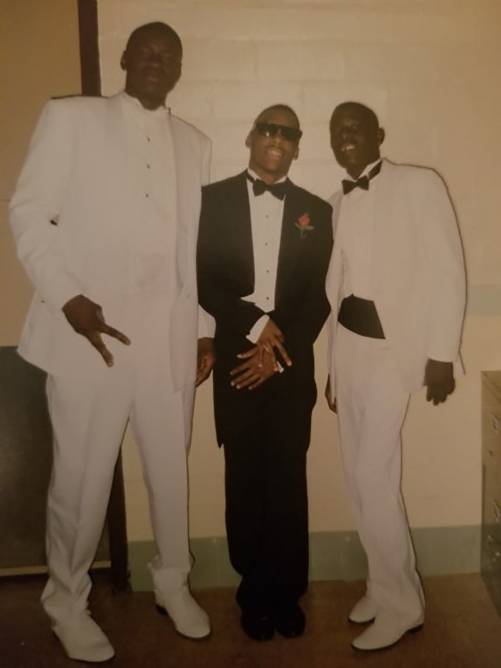 (1992年,乔治·弗洛伊德(左)与乔纳森·维尔和米尔顿·卡尼在一所高中的舞会上。)