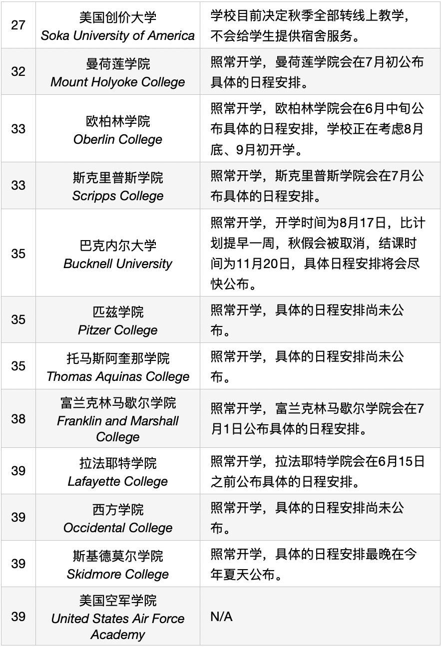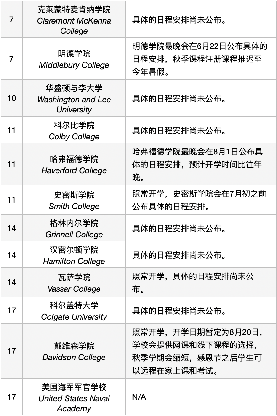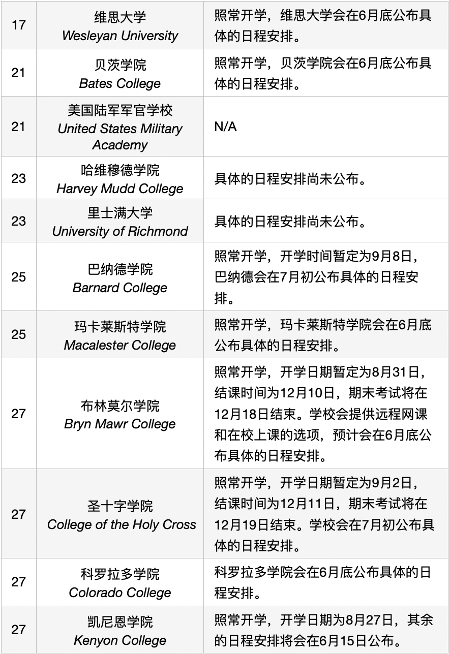 接下来,我们为你总结了90所美国顶尖大学的开学计划,其中包括了U.S.News排名前50名的综合型大学和前40名的文理学院。多数美国大学将在6月中旬到7月初这段时间给出具体的时间安排。