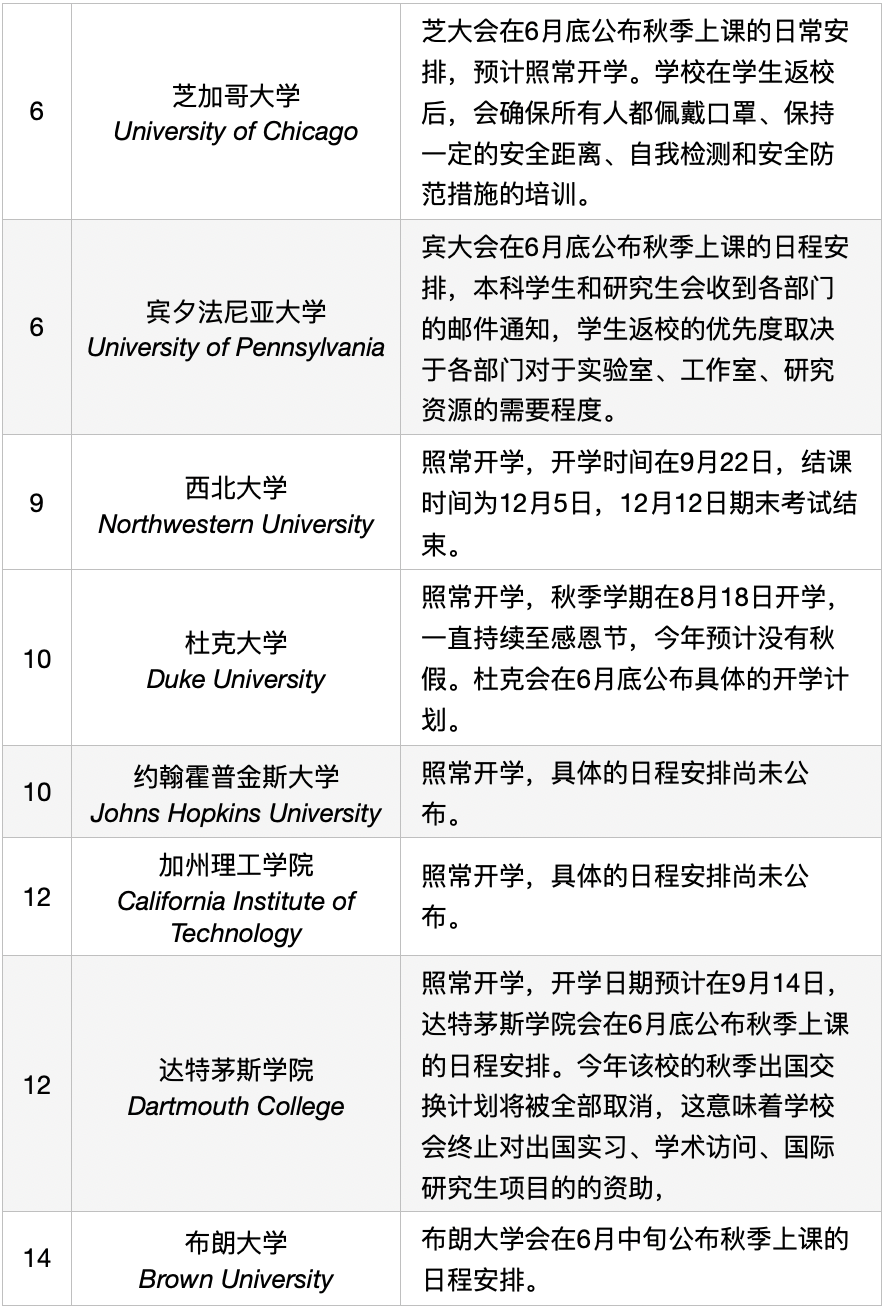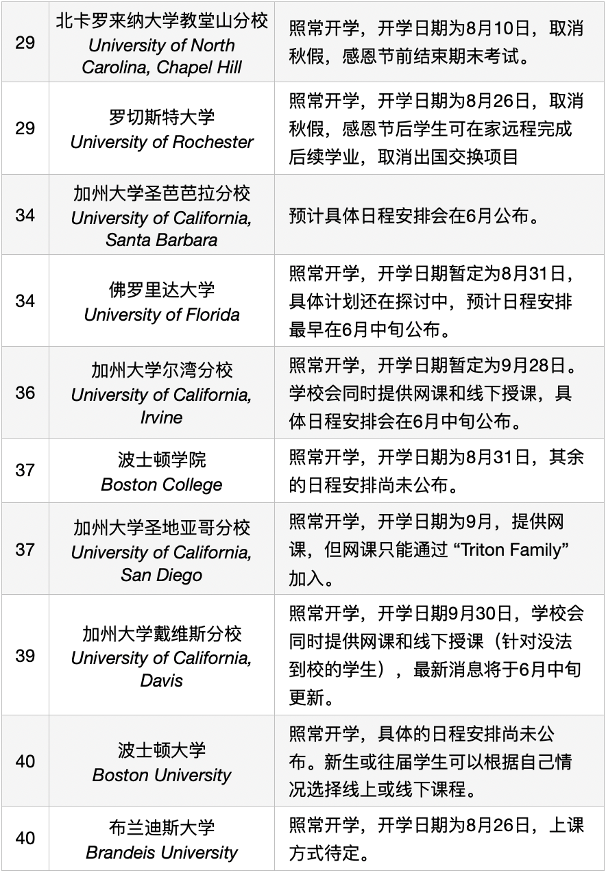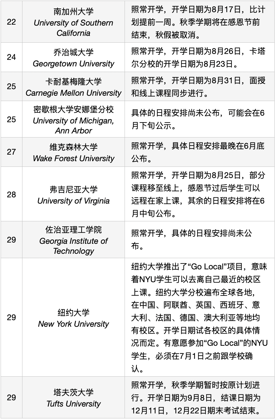 以下是截止至6月7日,90所学校官网的更新情况,未来几个月可能会有变动,请大家持续关注秋季开学的最新进展。如果你的大学有任何通知,欢迎在留言区与我们分享。