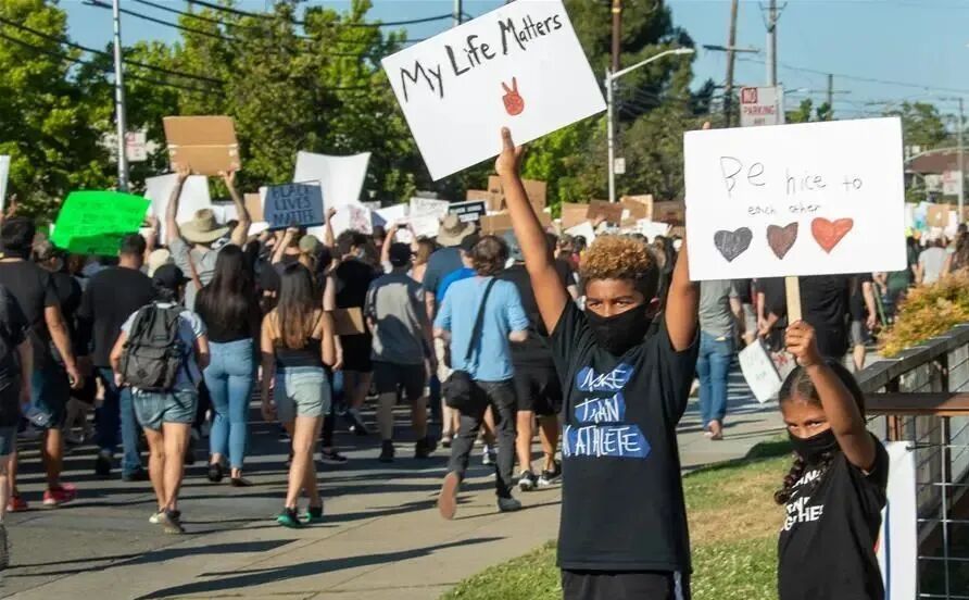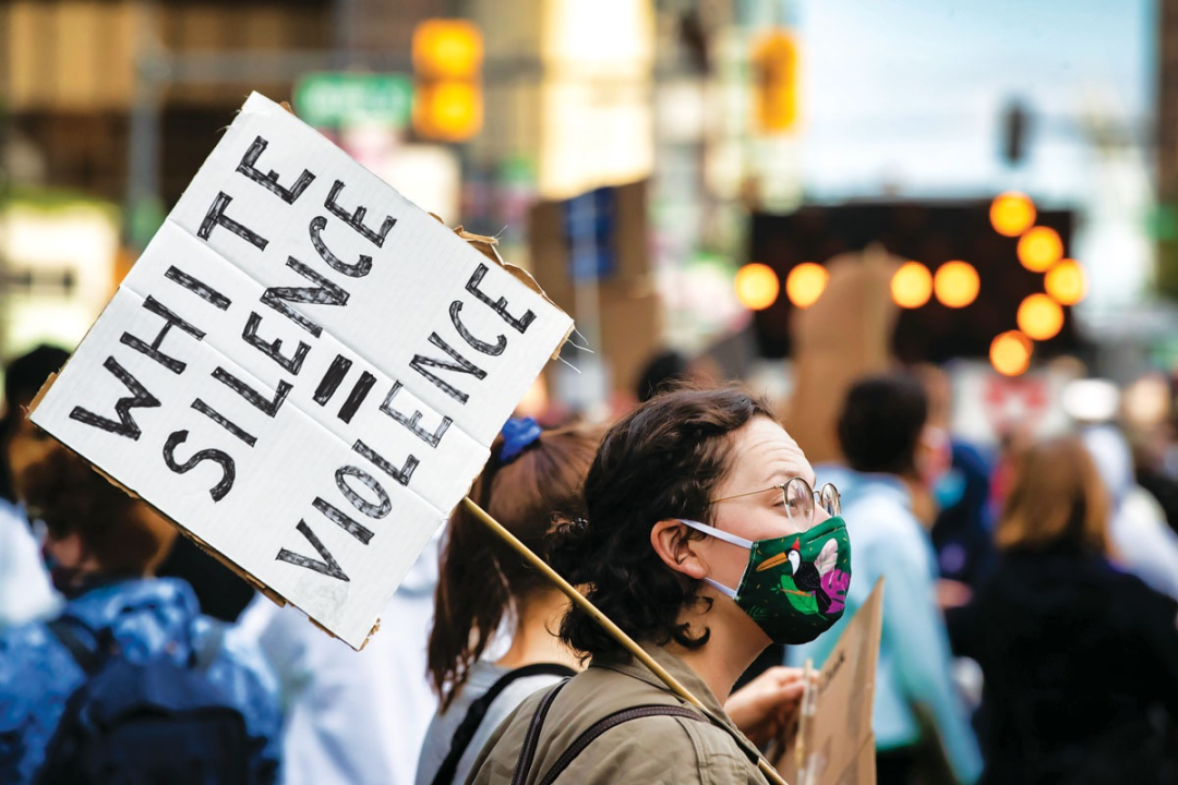 抗议的浪潮已经波及到了美国国境以外,在温哥华,有人打出“白人的沉默等同于暴力”的标语。