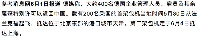 参考消息报道将有400名德国企业管理人员乘坐包机抵达中国