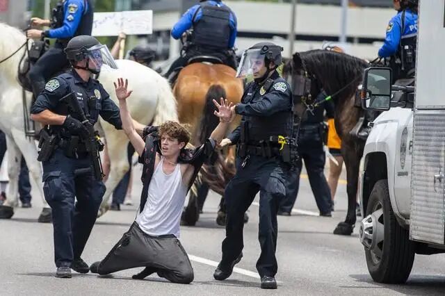 在洛杉矶,市长埃里克-加塞蒂也发布了宵禁令,一天之内警方逮捕了500多人。而佛罗里达州迈阿密-戴德县市长卡洛斯-吉梅内兹在迈阿密市中心至少有一辆警车在迈阿密警察局总部外被放火烧毁后,下令从晚上11点开始实行全县宵禁。