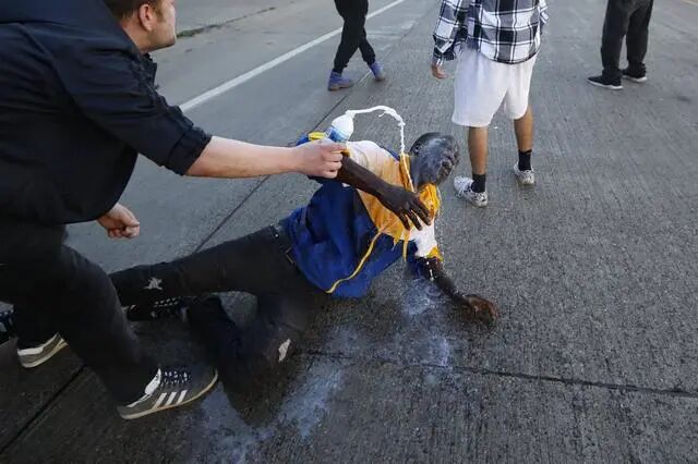 抗议者在前市长里佐的雕像上喷漆,并试图将其推翻。里佐先生是1991年去世的前警察局长,他在当地采用了非常严厉的管制措施,包括突袭同性恋俱乐部。他仍然是费城许多人厌恶的人物,现任市长吉姆-肯尼曾宣布计划将雕像搬到一个新的地点。