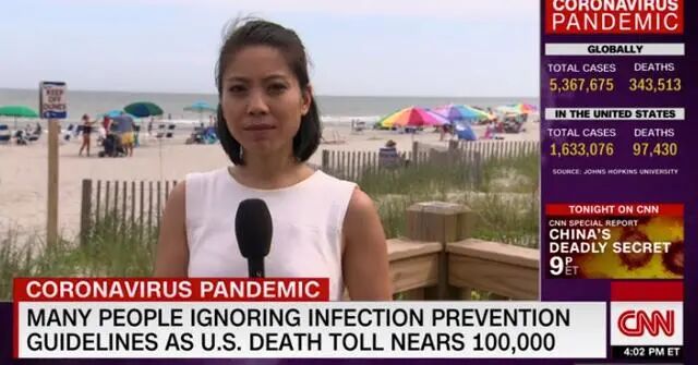 据美国媒体26日报道,当地时间23日,CNN的一名华裔女记者陈亦梵(Natasha Chen)在美国乔治亚州泰比岛海滩录制采访时忽然遭到民众无故指责,要求其”摘下口罩”,并发表了一些歧视言论,要求其对疫情负责。