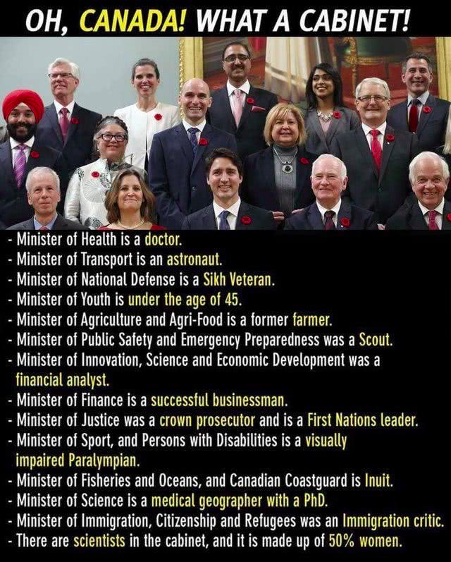 图上这样写着:Oh 加拿大,这个内阁可太专业了——