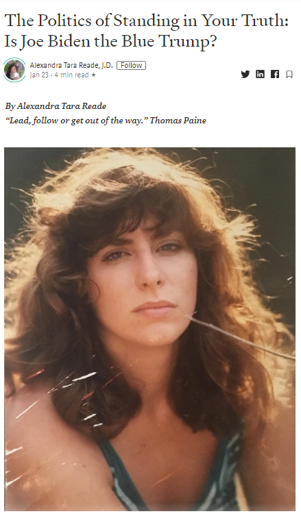 到了今年1月,雷德完全支持总统候选人伯尼-桑德斯。在坚定不移地支持后者的同时,她还对拜登进行了肆无忌惮的攻击。在Medium上的一篇文章中,雷德将拜登称为 “蓝色版本的川普”(下图)。雷德还力推向桑德斯/伊丽莎白-沃伦投票,抱怨民主党全国委员会试图将拜登 “塞给 “民主党选民 ,”塞进 “民主党人的喉咙里。