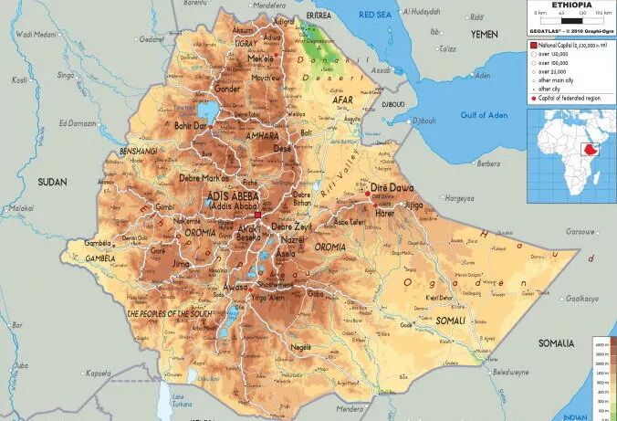 这张图上颜色较深的地方,海拔都在2500米左右。高海拔是埃塞俄比亚饥荒的重要原因