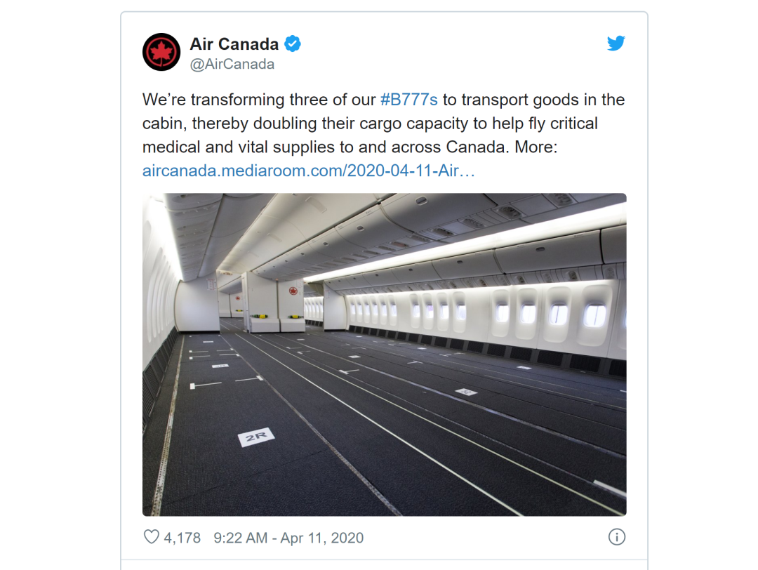 加拿大航空货运副总裁蒂姆•斯特劳斯在一份声明中表示:“迅速向加拿大运送关键的医疗和其它至关重要的物资,并帮助在全国各地分发,对于抗击新冠危机至关重要。”