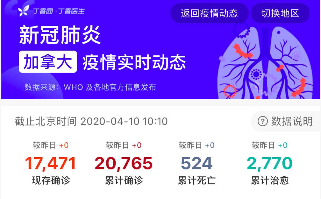 而加拿大的情况也不太乐观,现在确诊17000多例,死亡500+。
