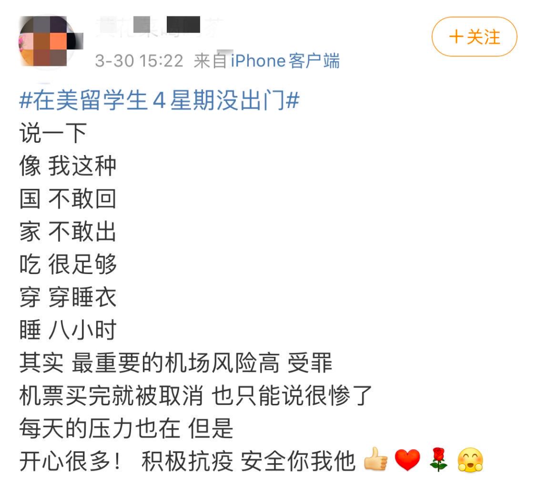 所以一部分未成功回国的同学打算就此留守国外,因为对于很多人来说,回中国隔离或是在学校的宿舍中隔离,都没有区别。