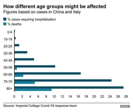 基于中国和意大利这两个受新冠病毒影响最严重的国家病例的估算,80岁以上的人,这一比例将上升到71%