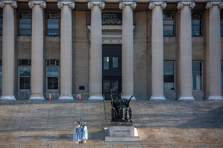 (3月初,三位大学生在哥伦比亚大学的自拍。《纽约时报》Juan Arredondo)