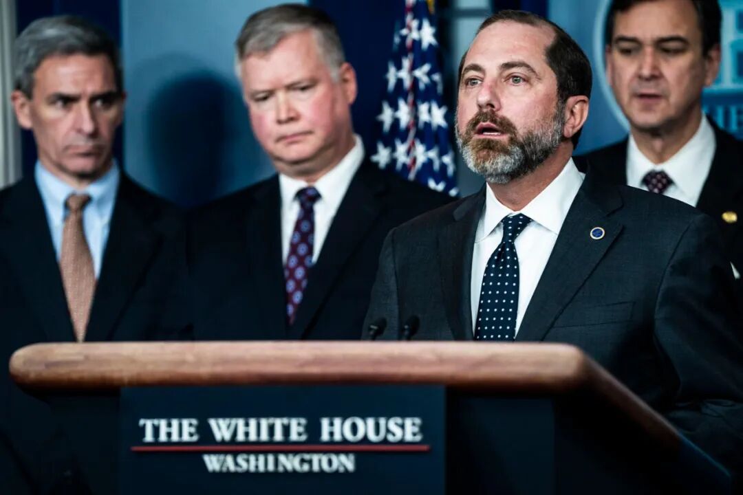 卫生和公共服务部长亚历克斯·阿扎尔(Alex Azar)于1月31日在白宫举行的关于冠状病毒的简报中发表了讲话。图源:华盛顿邮报