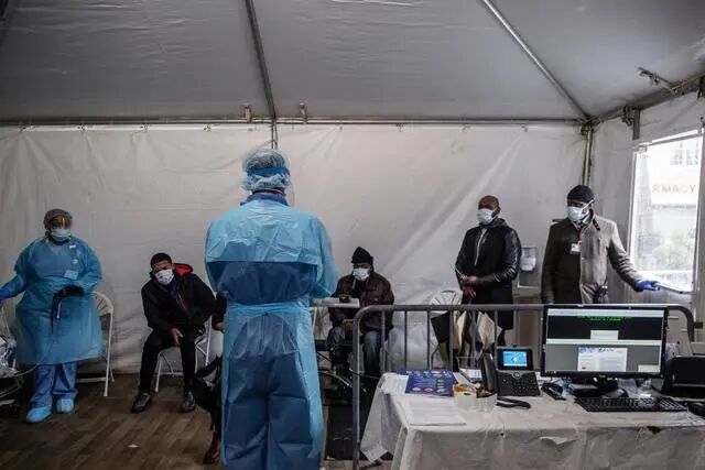 在布朗克斯区蒙特菲奥里医院系统一个分院,护士们穿着冬天的外套,站在一个没有暖气的帐篷里,为有症状的病人分诊。而在皇后区的埃尔姆赫斯特医院中心,病人有时还没来得及搬到床上,就已经奄奄一息了。