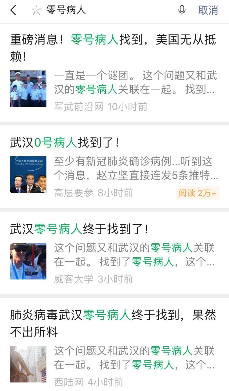 这些自媒体文章指向很明确——“零号病人”来自美国。粗略看一下,有些文章的阅读量达十万以上。