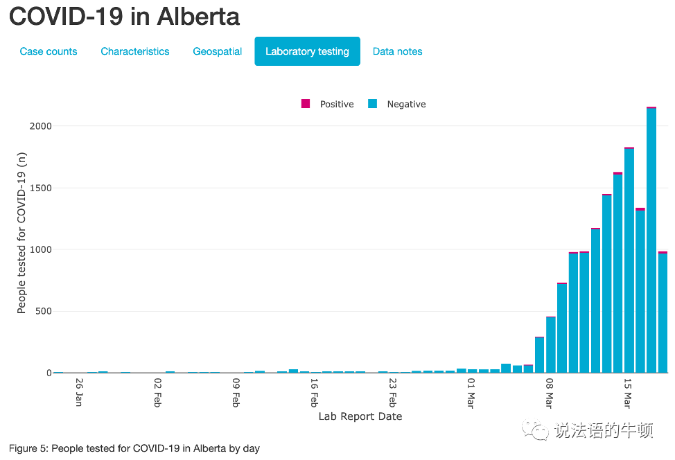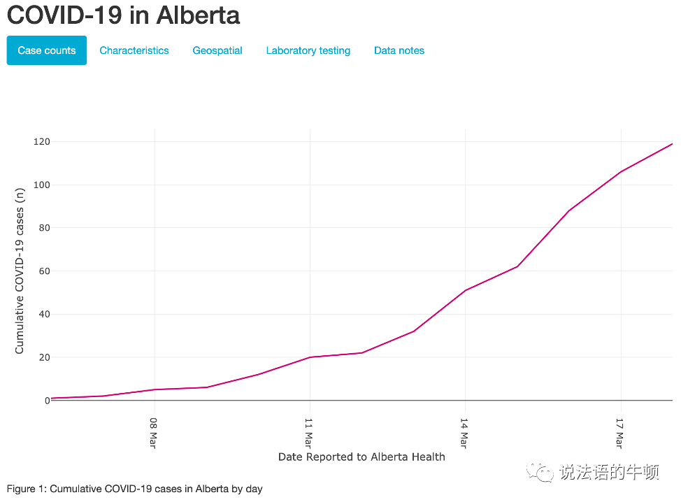今天,艾伯塔的省政府网站还新上线了一个COVID-19疫情数据可视化的网页:https://www.alberta.ca/covid-19-alberta-statistics.aspx,点击左下角阅读原文也可以打开。我看了下其他兄弟省份的省政府官网,我们艾伯塔好像是第一个实现数据可视化的省份,值得褒奖一下。