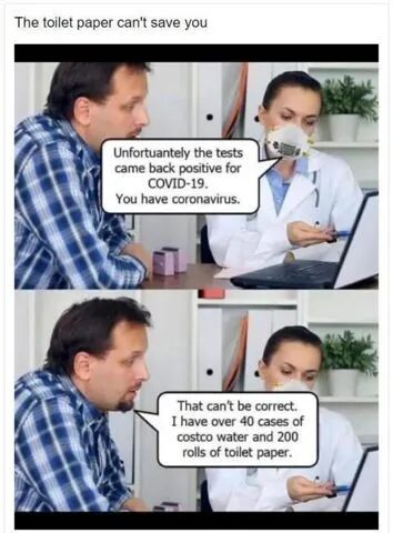 患者:不可能,我明明有 40 箱水和 200 卷厕纸