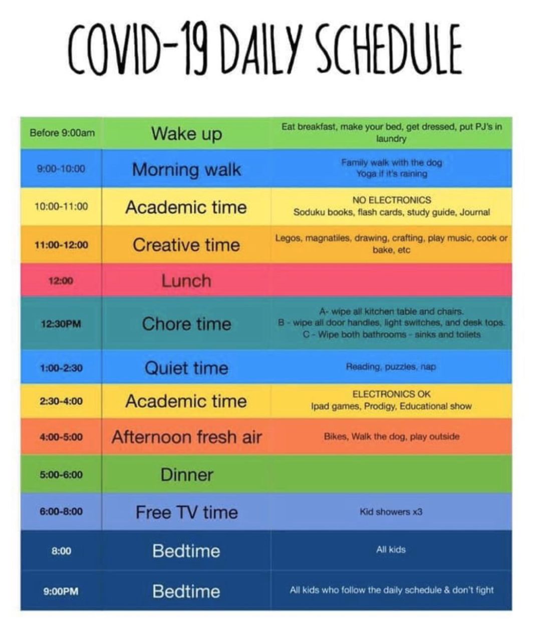 女儿在老母亲的威逼利诱下,极不情愿地列了个作息表,后来在学校的推特上发现,原来学校早给准备了一个,于是欣然follow,因为根据这个作息表,9点才用起床。