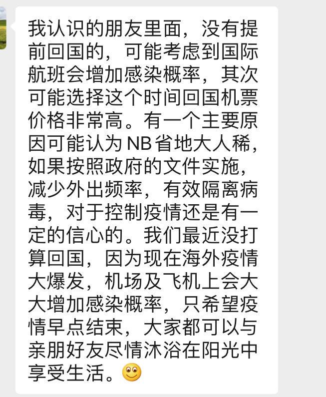 这所大学有不少中国教授、留学生和访问学者,跟其中的几位“云聊”了一下,发现大家心态都还好,普遍的共识是:该做的防护措施做到位,剩下的就只能看运气了。一位中国教授估计被不少亲友关心慰问,还专门在朋友圈广播:一切安好。😊(见聊天截屏图片)