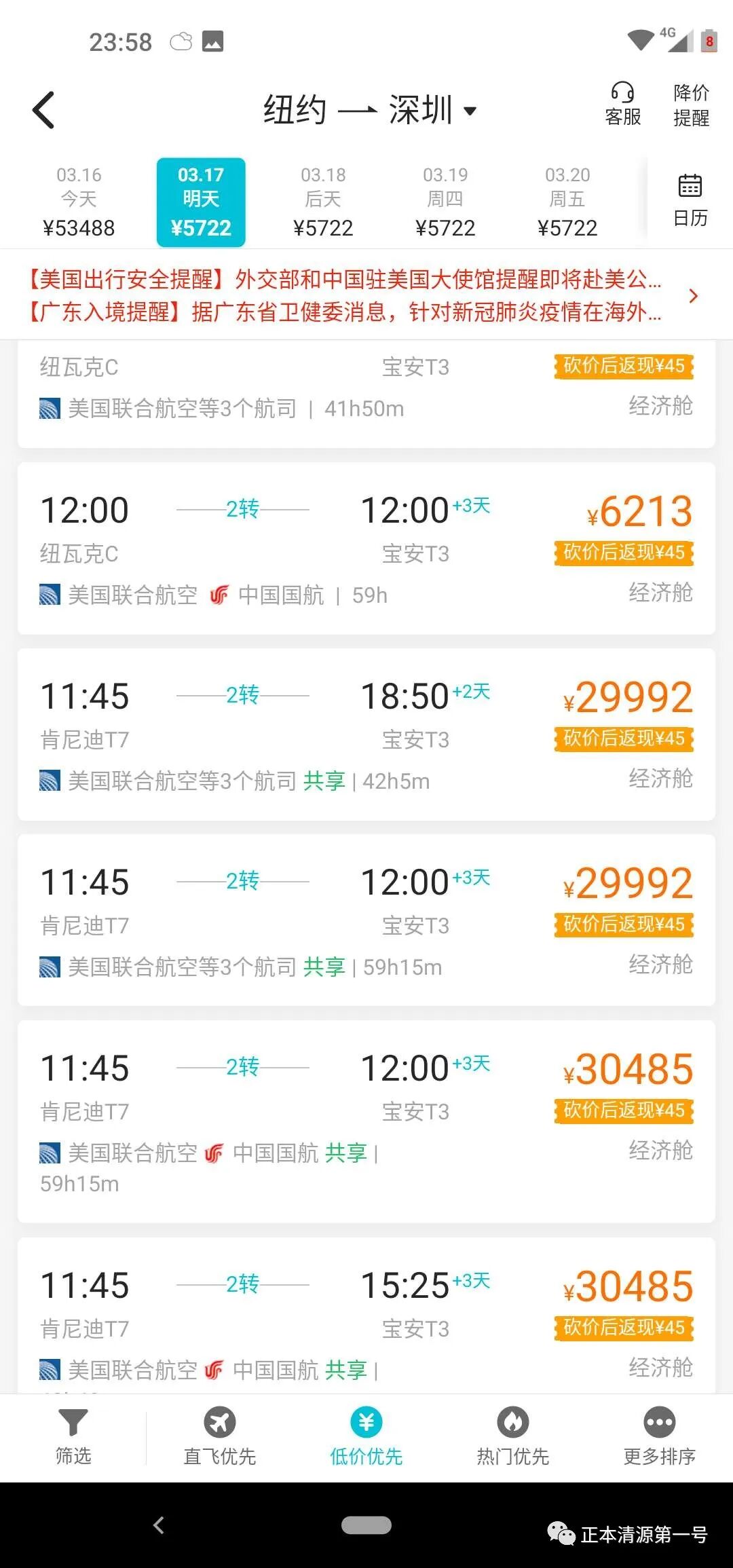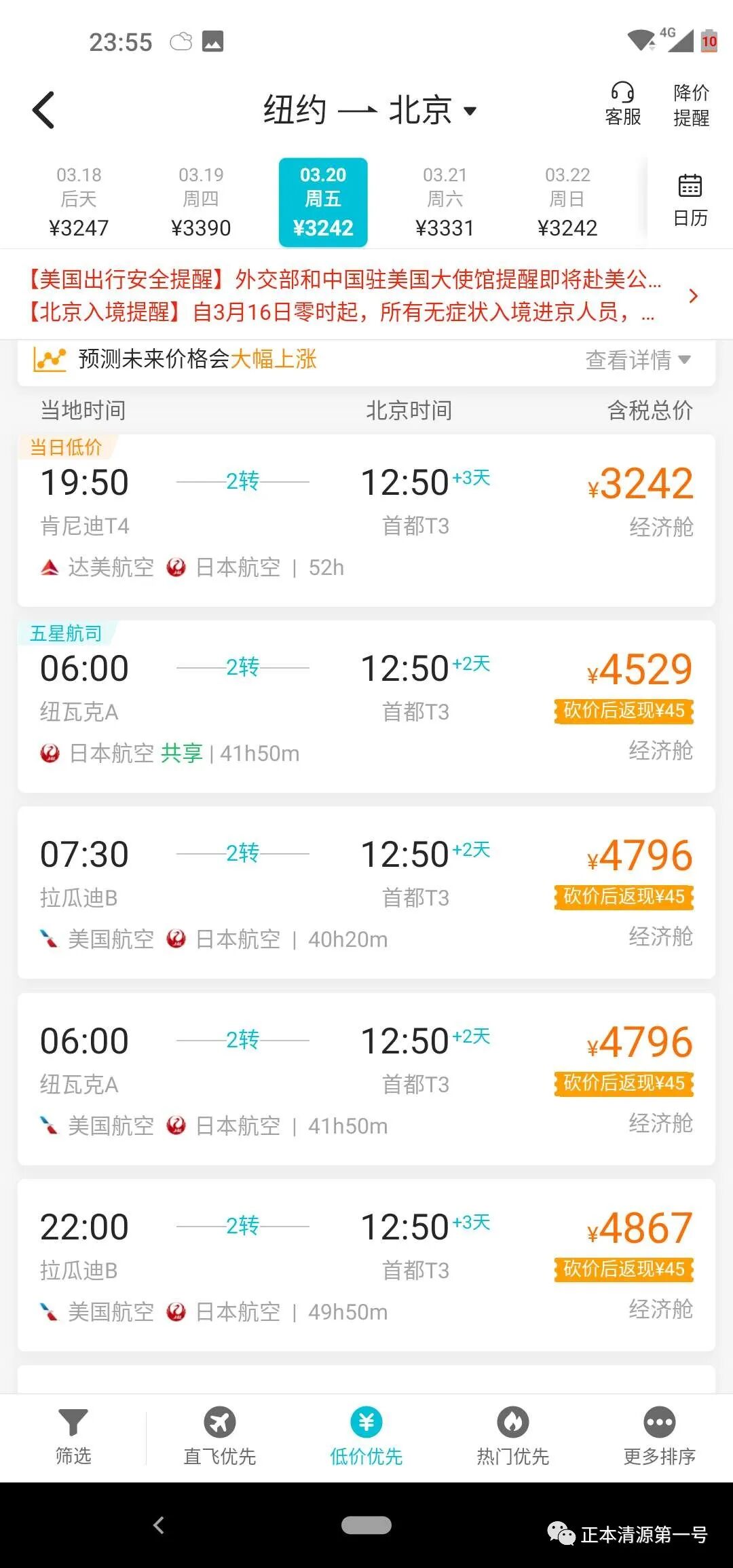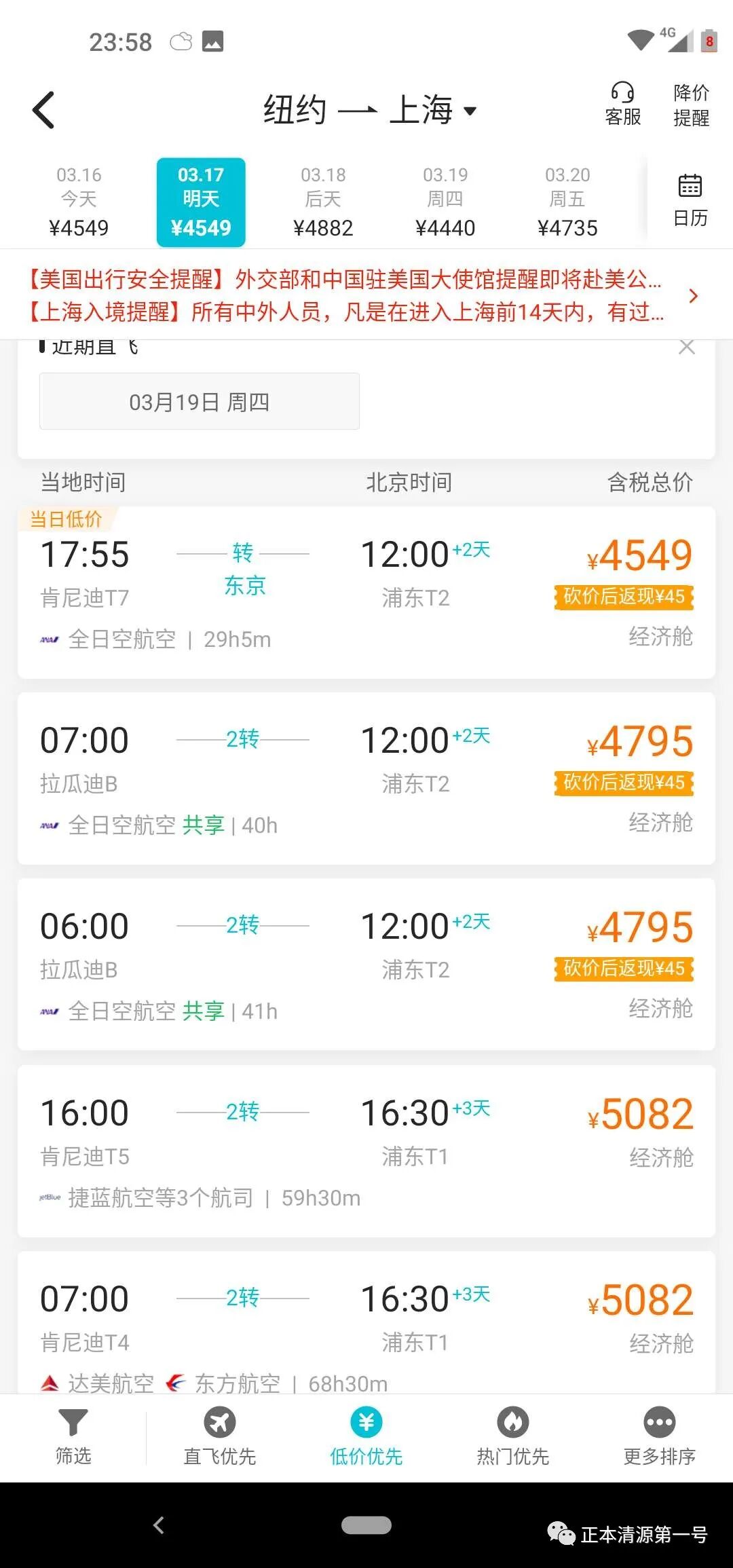 从机票网站上可以看出,实际上国内航空公司都已经停了从美国到中国的航班,就是怕海外的华人这时候回来。只有美国航空、全日空等航司还有到中国的航班(因为当初别人要断航时,你在抗议,现在不好意思自己断别人的航了吧)。