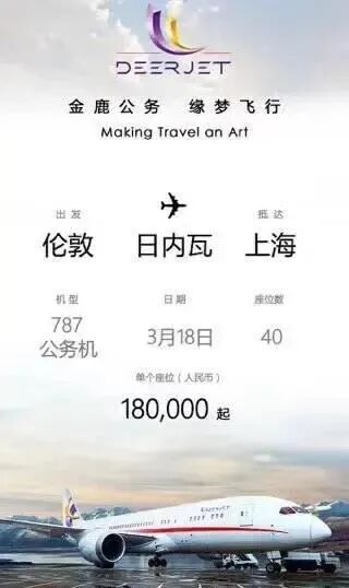 一张787公务机执飞的,单个座位18万的海报传遍了朋友圈
