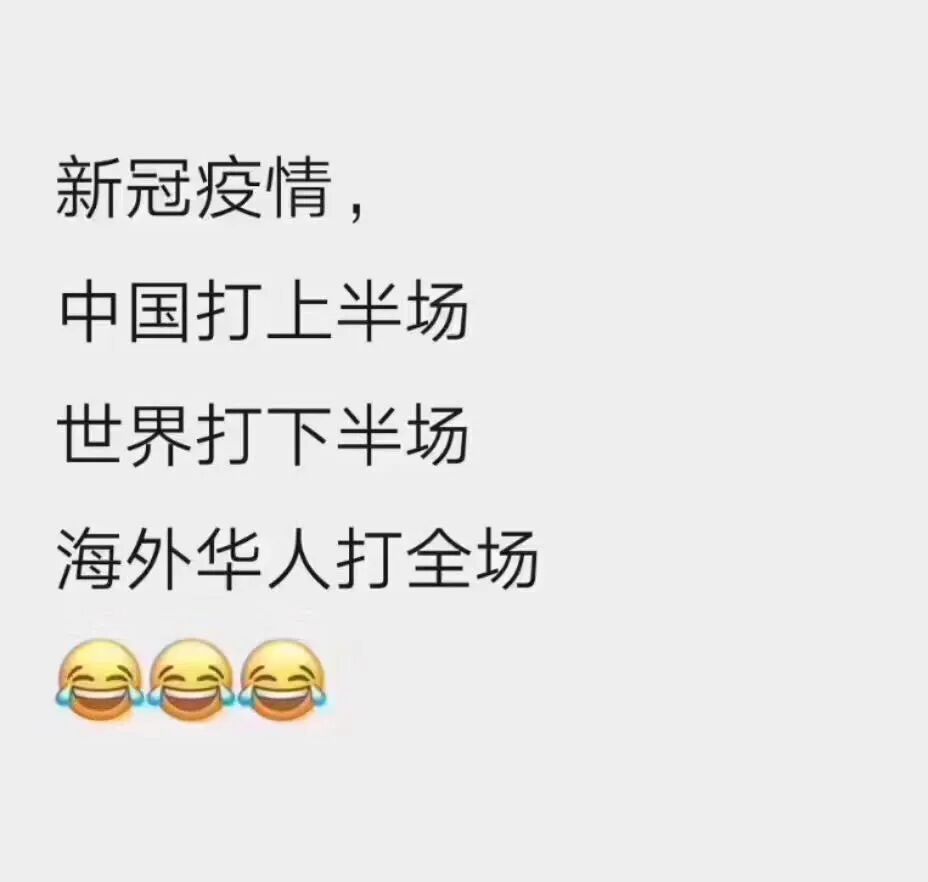 “新冠疫情,中国打上半场,世界打下半场,海外华人打全场”。
