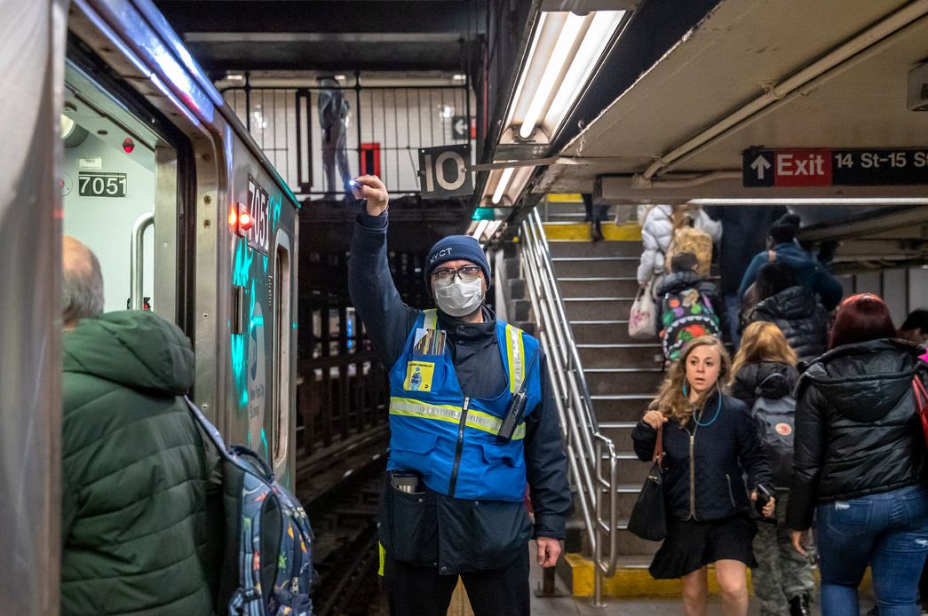 (纽约大都会运输署一名带着口罩的员工。BRITTAINY NEWMAN/THE NEW YORK TIMES)