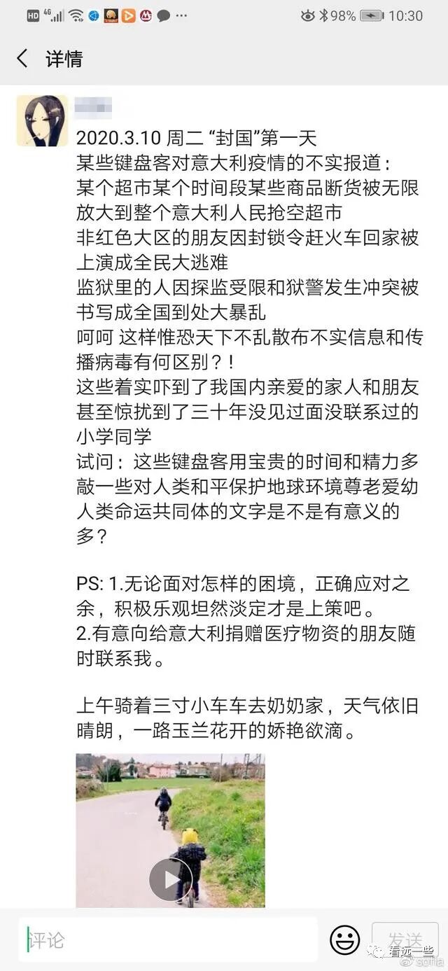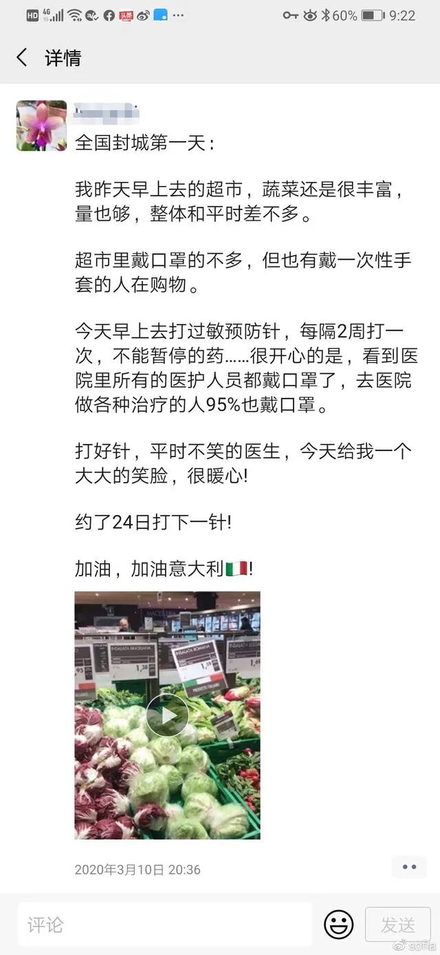 那天我在意大利的华人朋友一半都在拍超市发给国内的家人看,好几个朋友的感慨都是“怎么我妈发来的关于意大利的消息,让我怀疑自己是生活在另一个国家??”