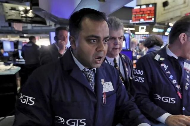 图片说明:周一,纽交所,交易所Dilip Patel正在看盘中 | Source: AP