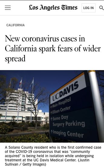 2月26日美国第一例社区传播(萨克拉门托地区)被报道时曾引发短暂恐慌,现在已经是常态。