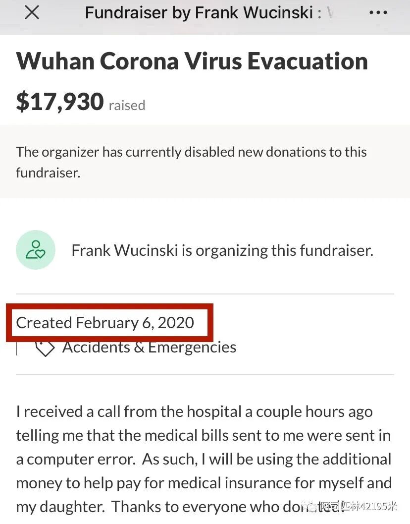 四,文章说一位美国人佛兰克“隔离费用太贵,被迫众筹”?