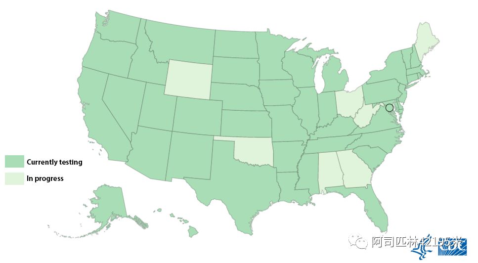 5,如果您所在的州还没有一例病人,先别高兴,注意一下会不会是浅绿的那几个州?它们还没开始大规模测试,但应该很快就会有了。