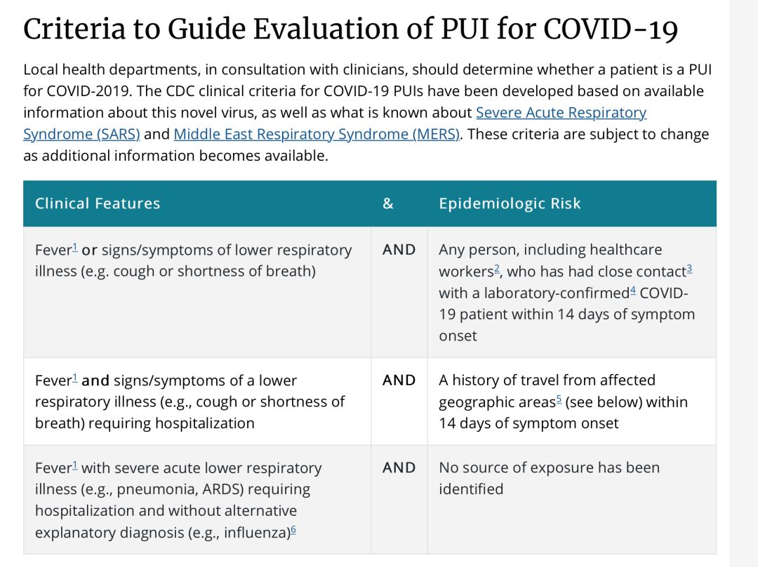 ● 3月4日前美国疾控中心公布的疑似病例标准,但现在已经被撤掉 / 网页截图