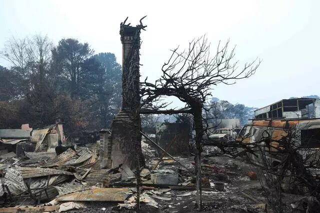 浓烟之下,2500间房屋坍塌成废墟,27个人火海丧生,其中有3名消防员。悉尼大学发布的报告显示,澳大利亚全国有10亿动物被大火波及。曾经的生活化为焦灰,被强烈的气流卷入高空,一些飘向了邻国新西兰,一些则抵达了11000公里外的南美州上空。澳洲著名的维多利亚阿尔卑斯山雪顶有些发黄。
