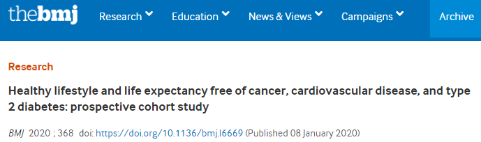 [1] Li Yanping, et al., (2020). Healthy lifedata-style and life expectancy free of cancer, cardiovascular disease, and type 2 diabetes: prospective cohort study. BMJ, DOI: 10.1136/bmj.l6669