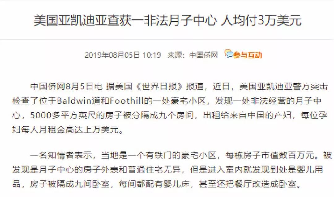 随着赴美生子的火爆,近年美国众多华人月子中心应运而生,且生意兴隆。因为部分华人月子中心违规设立在居民住宅区,且存在其他不当经营及欺瞒行为,近年也开始被美国执法机构盯上。