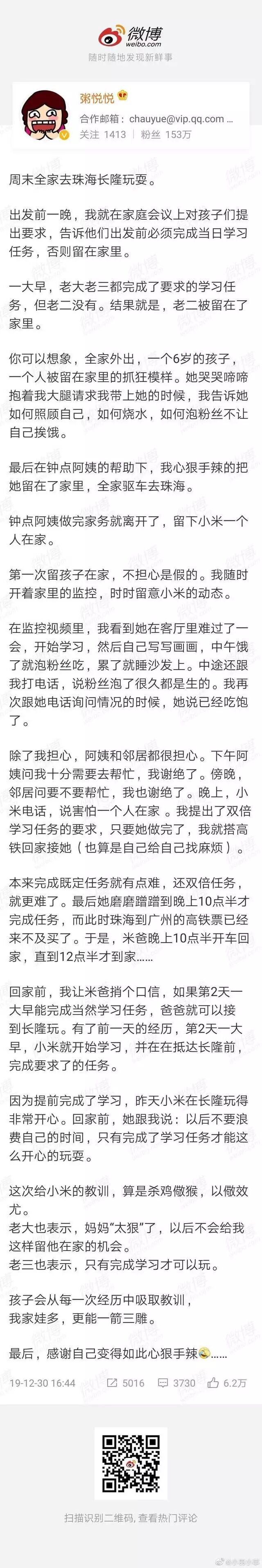 新年伊始,微博上一位拥有百万粉丝的育儿大V因为比虎妈还胜一筹的