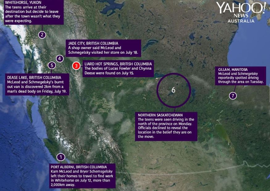 警方在加拿大范围发出通缉令,并与军方合作多省追捕。3个星期以后的8月7日,警方在曼省Gillam的丛林中发现2名少年的尸体。