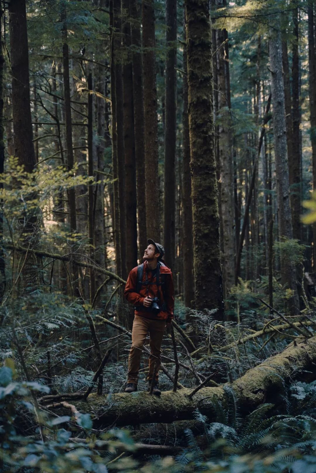 千年古树,枝丫垂挂下绿色胡须,出其不意的棕熊足迹……“大树猎人”TJ Watt正带领黄觉穿越其中,寻找一棵800多岁的巨树。Photo:张博然Eric/时尚旅游