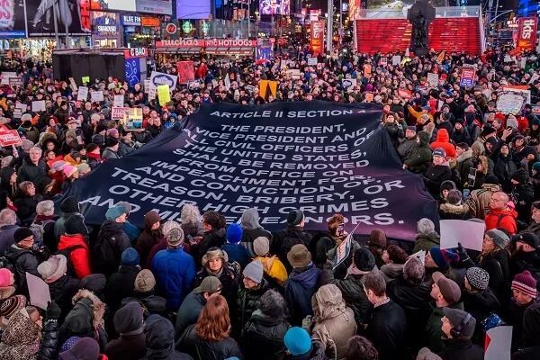 笔者昨天参加了纽约时代广场支持弹劾的游行。人很多。寒冷的微雨中,人们很有激情而且很有秩序。