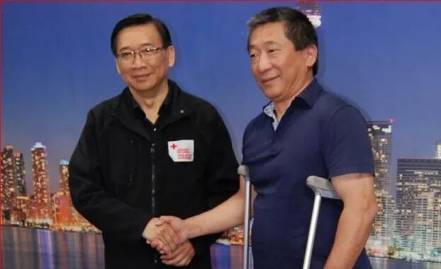 2016年阿省火灾时吴健(图右)以个人名义捐款$200元(51网资料图片)
