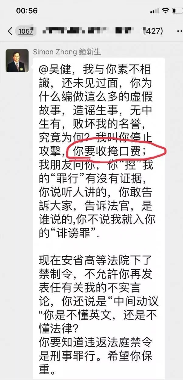 据吴健介绍,他移民加拿大20年,他与钟新生根本就不认识。既然不认识,为什么会被钟新生告诽谤呢?因为吴健在微信群里发言涉及到了钟新生。吴健认为钟新生作为侨领、非牟利机构社区与文化中心负责人,有义务接受社区的批评和质疑。但是钟新生认为吴健的很多说法都是诽谤。