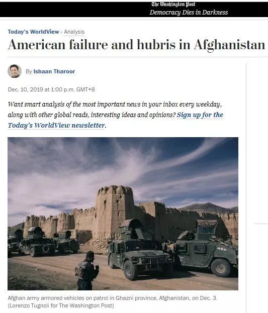 《华盛顿邮报》在报道开头说明,该报获得的一份美国政府文件的机密资料显示,美国高级官员迄今的18年中,都没有说出关于阿富汗战争的真相,反而是不断发表他们自以为是的乐观声明,并隐藏了明确的证据,表明在阿富汗的战争已经无法打赢。