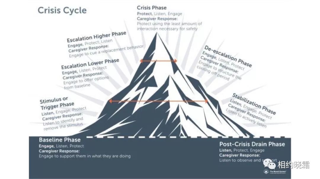 要预防,防止危机产生和升级。当危机到达冲突高峰时,那时你想要孩子安静下来不是一件容易的事情。你首先要自己冷静下来,给孩子减压,让孩子在精神上解除警报,然后才能够解决问题。