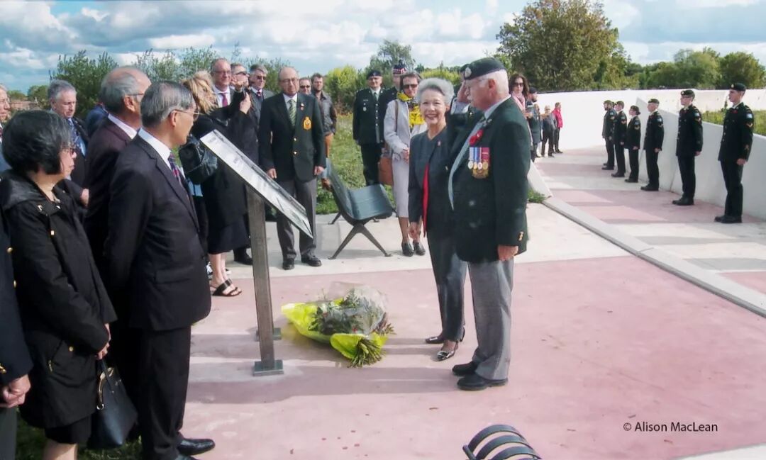 在甄硕明的呼吁下,加拿大华裔社区对山峰-70纪念项目给予了极大支持。特别是得益于前加拿大参议员利德蕙(Vivienne Poy)博士及知名慈善家何鸿毅(Robert H. N. Ho)等人的慷慨资助,一战胜利101年后的2019年10月,当年的战场阵地上终于树立起一座纪念碑,并修建了相关纪念设施,包括一条以费德瑞克·梁命名的走道和长椅等。加拿大多位军政界要员出席了纪念碑揭幕仪式。为了让更多人、特别是后代们记住这场战役,了解这段不该被遗忘的历史,哈钦斯和他的团队还撰写了关于这场战役及其重要意义的教育材料,提供给加拿大全国3000多所中学,并持续在社会各界奔走努力宣传。