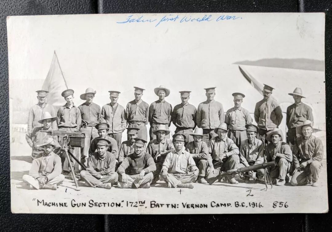 在部队里,种族问题很可能没有困扰过费德瑞克。哈钦斯说:“在部队里,种族并不是一个【需要考虑的】因素。”他认为,费德瑞克被分配担任机关枪手这一重要职位,其长官的考量显然完全是基于这个年轻人的优秀资质,毕竟战场上枪炮无眼,战友们的性命都系于彼此手中。在加拿大战争博物馆收藏的一张摄于1916年落基山骑兵营军营中的合影上,费德瑞克盘腿坐在前排正中,身旁是一架一战期间最新颖的刘易斯机枪(Lewis gun)。他的面容表情略为严肃,神态坚定自信。