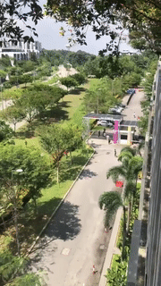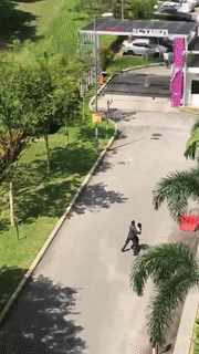 这时楼上有一名华人女子用中文对该男子大喊:“哎!接一下我,接一下我!”